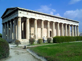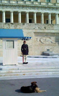 I loved Athens. It was European enough to have good places to eat and hang out, but a little bit down at heal enough to be interesting – and with very very few tourists. Of course the Greeks never wanted to be down at heal or to run up a huge debt to banks that they now can’t pay, but their government organised for them to do both without really telling them what was in store. So they are at least partially justified in being angry now they have to “live on a Bulgarian salary in a city that costs as much as Paris” as one woman on TV put it. So they turn to tradition and demonstrate. And the news media which likes a good riot puts this out to the world, and tourists stay away for fear they will be teargassed. Sure I saw riot police, but they were more comatose than the Evzones (the ceremonial guards with the weird costumes – kilt, funny hat, and pompom slippers). I understand all the hype about the Acropolis, but truthfully, I enjoyed the Agora and temple of Hephaestus below rather more.