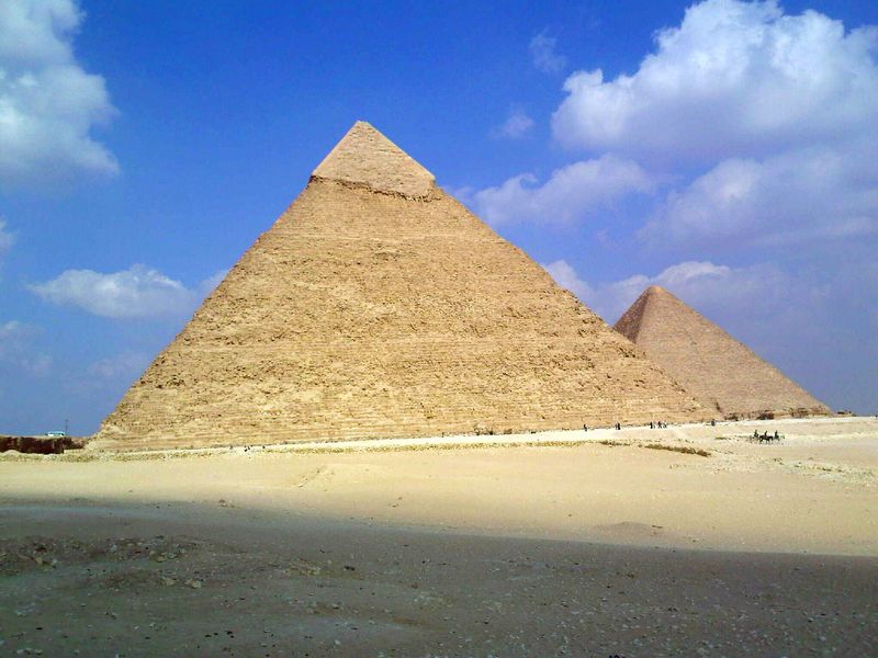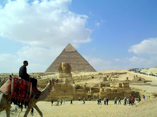 Autumn was arriving in Athens and so, given my hatred of cold weather unless accompanied by jolly holidays, I had decided to keep moving south, which meant Egypt. The trip to Cairo was very easy (Olympic still feeds you on their flights – oh and silly fact, Greek Railways are so badly loss making that it has been calculated it would be cheaper to just close the railways entirely and give every passenger the taxi fare home instead of having them travel by rail). The cab driver on the way to Cairo city said there was no traffic because it was Eid. Well this was news to me and I feared everything would be dead – and indeed the business area was, but not the evenings… Eid is a little like Thanksgiving. In this case you give thanks that God spared Abraham’s son Ishmael from a sacrifice God had put to Abraham as a test of faith (no Isaac was the other one and God spared him too). And instead of slaughtering turkeys, you sacrifice your best livestock animal, eat a third, give a third to relatives, and a third to the poor. And you don’t go get it at a price per pound from your local Safeway – which led to me encountering a still dying cow outside a house near the Pyramids in Giza, and a major trail of blood from the first floor of the hotel building I am in, all the way down the stairs to the door. Not to mention the woman by the Giza house busily dunking metres of intestine in an old oil drum full of bloody water. It’s nearly 40 years since I was last in Egypt, but some things have changed very little. The Pyramids, on the other hand, have been coralled in an attempt to stop tourists trampling them into dust. Even so you can still walk away from the controls and get up close with the smallest of the three (which I have to say I climbed back when I was young – no climbing allowed now though).