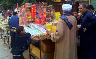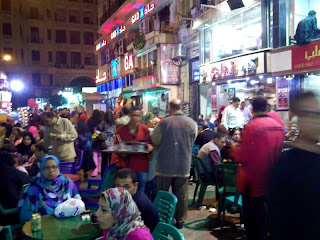 Every restaurant full to bursting. Guys letting off extremely loud and bright handheld fireworks which would break every safety regulation I know. Cafes and sheesha parlours with tables and chairs out in the alleys and streets leaving barely any room for cars or pedestrians. And every sheesha place with it’s own small brazier for the hot coals, ferried around still glowing in large ladles by the attendants. People dressed in their best clothes – a huge mix of styles from the total black female coverage to the use of headscarf and dress as a brightly coloured fashion statement; and the guys in everything from suits, to jeans, to gallibayahswith turbans. All to the accompaniment of deafening local music. Exactly and precisely like Arabian Nights. Priceless.